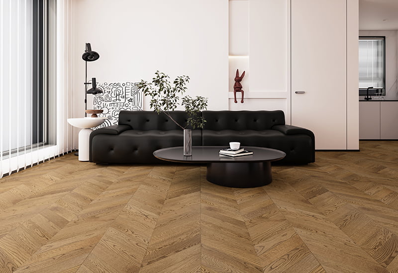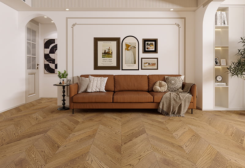 Přineste do svých interiérů nadčasovou eleganci s východní Evropou kartáčovanou dřevěnou podlahou Chevron. Tato podlaha, která má klasický vzorec Chevron, přidává sofistikovaný geometrický design, který vyhovuje současným i tradičním prostorům. Kartáčovaný povrch zvyšuje přirozenou texturu dřeva a dává mu hmatový, rafinovaný vzhled, který přidává hloubku a postavu do vašich podlah. Tato podlaha vyráběla výjimečnou odolnost, což z něj činí skvělou volbu pro oblasti s vysokým provozem v obytných i komerčních prostorech. UV lakový povlak nejen chrání dřevo, ale také přináší jeho přirozenou krásu a zachovává vzhled dřeva a zajišťuje dlouhodobý výkon. Úroveň lesku 7 ± 2 ° poskytuje jemný, rafinovaný lesk, který nabízí rovnováhu mezi matným a lesklým povrchovým úpravou pro dobrý, elegantní dotyk. Je to všestranný design v kombinaci s vysoce kvalitním povrchem, což z něj dělá ideální volbu podlah pro vytvoření příjemného, elegantního prostředí, které obstojí v testu času. .