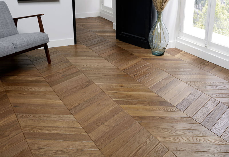 Vytvořená podlaha z tvrdého dřeva Chevron