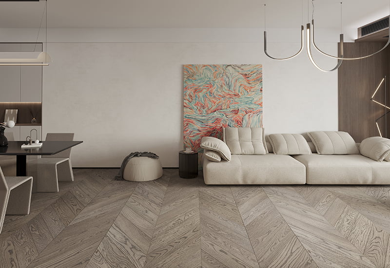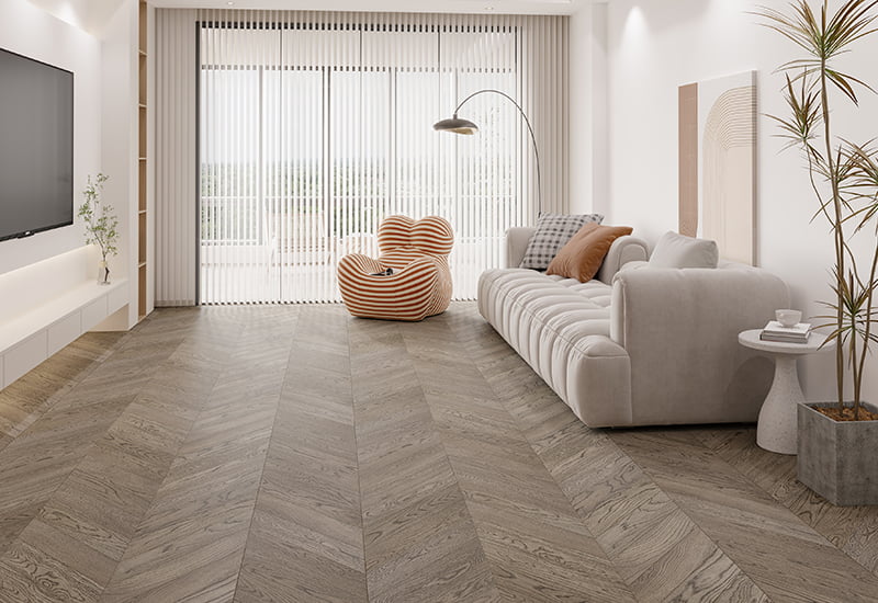 Vytvořená podlaha z tvrdého dřeva Chevron