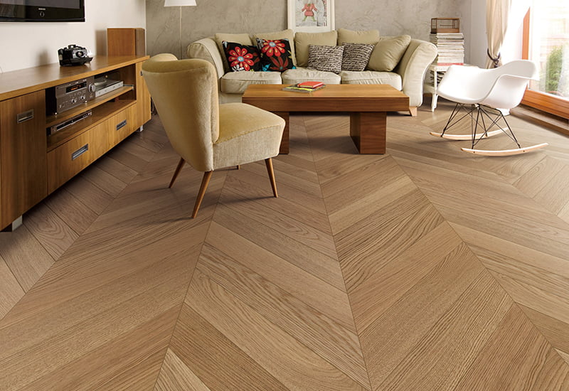 Vytvořená podlaha z tvrdého dřeva Chevron