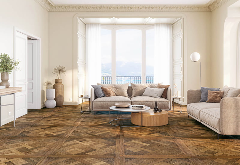 Teplý bílý dubový francouzský venkovský design Parquet Flooring je špičková dřevěná podlaha, která kombinuje klasický francouzský venkovský styl s moderním řemeslným zpracováním. Je pečlivě navržen tak, aby uspokojil teplou a přirozenou domácí atmosféru. Proces kouření dává dřevo hlubší tón a zdůrazňuje jeho texturu. Díky této technologii je nejen dřevo bohatší barevnou variantou, ale také zvyšuje celkovou hloubku podlahy, takže vypadá elegantnější a klidnější. Ve srovnání s tradičními lesklými nátěry, UV barvení může lépe udržovat přirozený vzhled dřeva a zároveň mít silný ochranný účinek. Tato podlaha je obzvláště vhodná pro dekorace ve stylu venkovské nebo francouzské pastorační styl. Díky jeho přirozené barvě a jedinečnému úpravě povrchu z něj činí ideální volbu pro vytvoření teplého, pohodlného a pastoračního prostoru. Je také velmi vhodný pro špičkové komerční prostory a francouzskou dekoraci pastoračního stylu a přidává do jakéhokoli prostoru přirozenou a elegantní atmosféru.